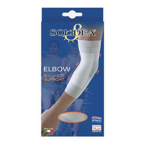 Gomitiera elastica, con compressione graduata 18/21 mmHg, per un confortevole sostegno. Si indossa facilmente grazie alla alta adattabilità del tessuto. Dotata di fasce di rinforzo per dirigere la flessione-estensione dell’articolazione e di una morbida sede per il gomito, sostiene l’articolazione agevolandone il corretto movimento. Ideale come protezione durante la pratica sportiva. E’ indispensabile in caso di distorsioni, tendiniti, lussazioni, artrosi e nella riabilitazione post-fratture. E’ realizzata in filato batteriostatico agli ioni d’argento che prevengono la proliferazione batterica e che mantengono inalterato l’equilibrio naturale della pelle.