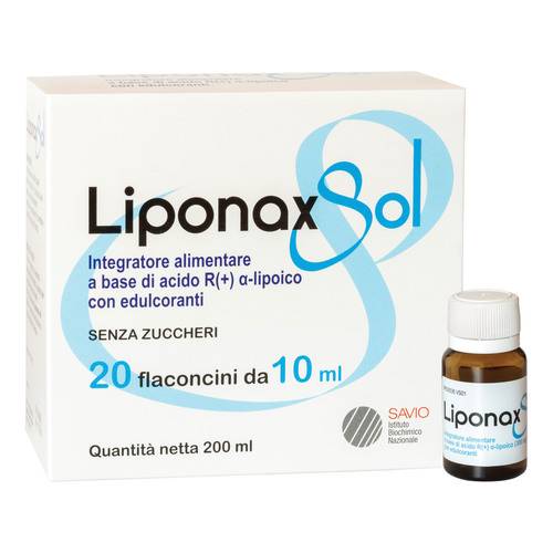 Liponax Sol contiene 300 mg dell’enantiomero R (+) che rappresenta la forma biologicamente attiva dell’acido alfa-lipoico.