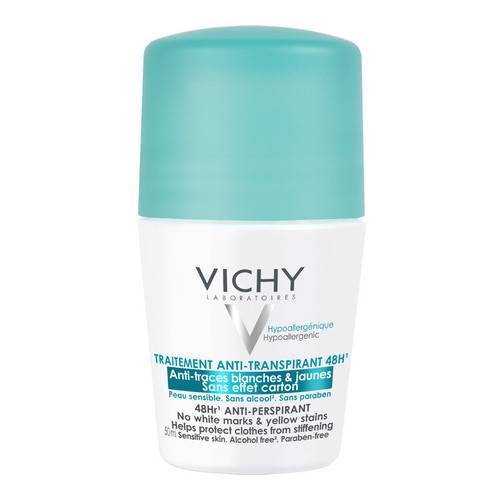 VICHY Deodorante antitraspirante con azione per 48 ore. Indicato per tutti i tipi di pelle con forte traspirazione. Efficacia anti-umidità e anti-odore. Con sali di alluminio. Per uso quotidiano. Senza alcool. Formulato per ridurre i rischi di allergia. Testato su pelle sensibile sotto controllo dermatologico.