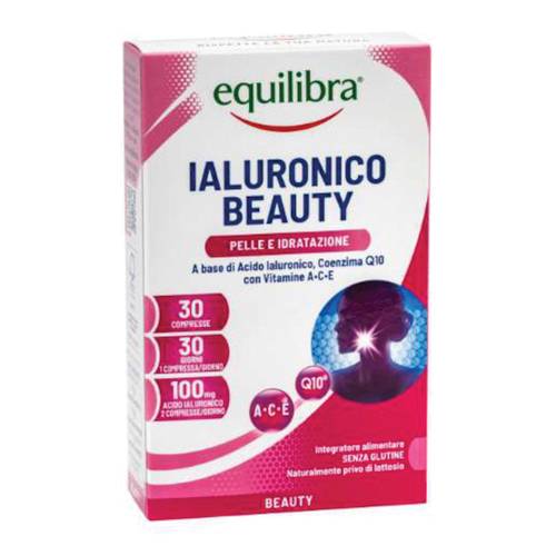 Integratore alimentare in compresse a base di acido ialuronico a basso peso molecolare con coenzima Q10, formulato per contribuire a contrastare i fattori di invecchiamento della pelle. La sua formulazione apporta sostanze che aiutano a mantenere la corretta idratazione della pelle e a contrastare i radicali liberi.