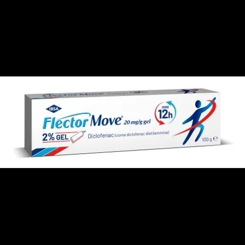Posologia. Adulti e adolescenti di eta' pari o superiore a 14 anni: inbase all'estensione della parte interessata da trattare, si applica un quantitativo di dimensioni variabili tra una ciliegia e una noce, equivalente a 1-4 g di gel (23,2-92,8 mg di diclofenac dietilammina corrispondenti a 20-80 mg di diclofenac sodico). FlectorMove deve essere applicato due volte al giorno (preferibilmente al mattino e alla sera).La dose massima giornaliera e' di 8 g di gel, corrispondenti a 185,6mg di diclofenac dietilammina (corrispondenti a 160 mg di diclofenac sodico). La durata d'uso dipende dall'indicazione e dalla risposta delpaziente al trattamento. FlectorMove non deve essere usato per piu' di1-2 settimane senza consultare il medico. Se i sintomi peggiorano o non migliorano entro 3-5 giorni, occorre consultare il medico. Popolazioni speciali. Pazienti anziani: non sono richiesti particolari aggiustamenti della dose. A causa del potenziale profilo di effetti indesiderati, le persone anziane devono essere sottoposte ad un attento monitoraggio. Pazienti con compromissione renale: non e' necessaria alcuna riduzione della dose per i pazienti con compromissione renale. Pazienticon compromissione epatica: non e' richiesta alcuna riduzione della dose per i pazienti con compromissione epatica. Popolazione pediatrica.Bambini e adolescenti al di sotto dei 14 anni: la sicurezza e l'efficacia di FlectorMove nei bambini e negli adolescenti sotto i 14 anni dieta' non sono state ancora stabilite. Non ci sono dati disponibili. Adolescenti di eta' pari o superiore a 14 anni: se questo medicinale e'necessario per piu' di 7 giorni o se i sintomi peggiorano, si deve avvisare il paziente/i genitori dell'adolescente di consultare un medico.Modo di somministrazione: per uso cutaneo. Si applica un sottile strato di gel sulle parti del corpo interessate e si massaggia delicatamente sulla pelle. Successivamente, le mani vanno pulite con un tovagliolo di carta e poi lavate, a meno che non siano la zona da trattare. Seviene applicata accidentalmente una quantita' eccessiva di gel, l'eccesso di gel deve essere pulito con un tovagliolo di carta. Il tovagliolo di carta deve essere smaltito nei rifiuti domestici per evitare cheil prodotto non utilizzato raggiunga l'ambiente acquatico. Prima di applicare un bendaggio, occorre lasciar asciugare il gel sulla pelle perqualche minuto. Inoltre, prima della doccia o del bagno, attendere che il gel si sia asciugato sulla pelle.