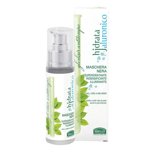 hjdrata jaluronico MASCHERA NERA SUPERIDRATANTE L'abbinamento dell' acido jaluronico a tripla efficacia e degli estratti dai semi del lino e tamarindo e dalle foglie del myrothamnus flabellifolia, risulta eccezionalmente attivo per limitare le perdite d'acqua e rafforzare la coesione intercellulare, rinormalizzando le funzioni della barriera cutanea e mantenendo l'integrità del film idro-lipidico, mentre l'inserimento della polvere di carbone di Bamboo, aiuta i pori cutanei a liberarsi da impurità e cellule morte lasciando la cute morbida e liscia.