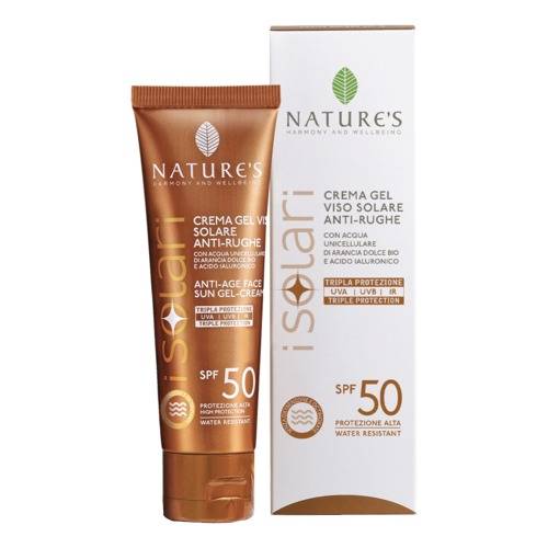 Crema gel viso solare anti-rughe protezione alta specifica per viso, labbra, collo e décolleté, regala un'abbronzatura intensa e luminosa. Contiene acqua unicellulare di arancia dolce BIO e acido ialuronico, con azione idratante e anti-age.