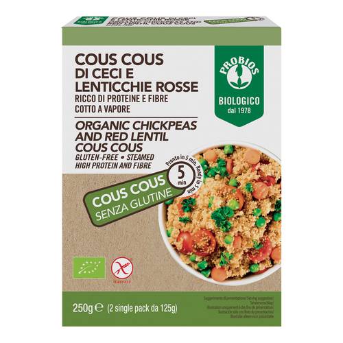 Cous cous prodotto con sola farina di legumi: ceci e lenticchie rosse.