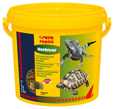 Sera reptil Professional Herbivor è il mangime complementare composto da granuli galleggianti bicolori, prodotti con un innovativo procedimento di coestrusione, per tutti i rettili erbivori, come tartarughe terrestri e iguane.