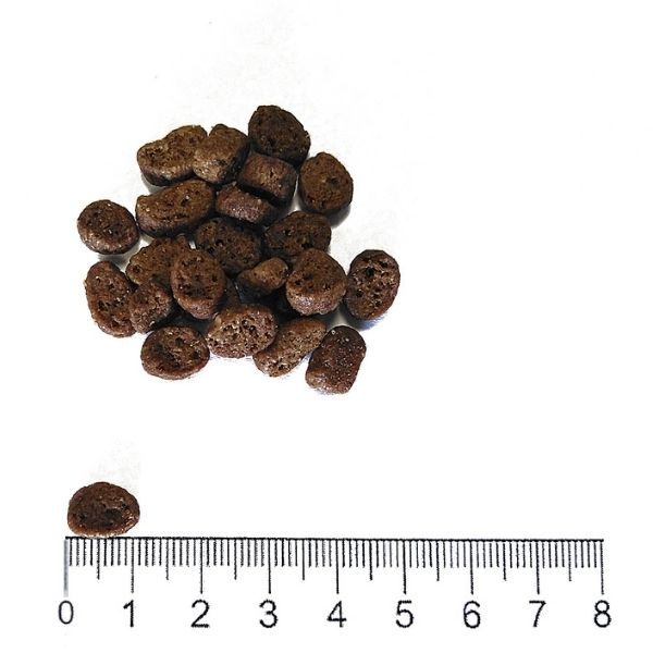 Proteina 33% , Tenore in materia grassa 11% , Fibre grezze 2,9% , Materia inorganica 7,9% , Omega 3 0,16% , Omega 6 1,6% , Calcio 1,6% , Fosforo 1,1% , Sodio 0,24% , Potassio 0,6% , Magnesio 0,1% .